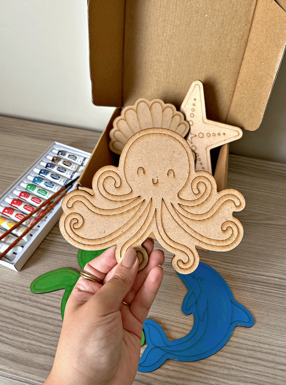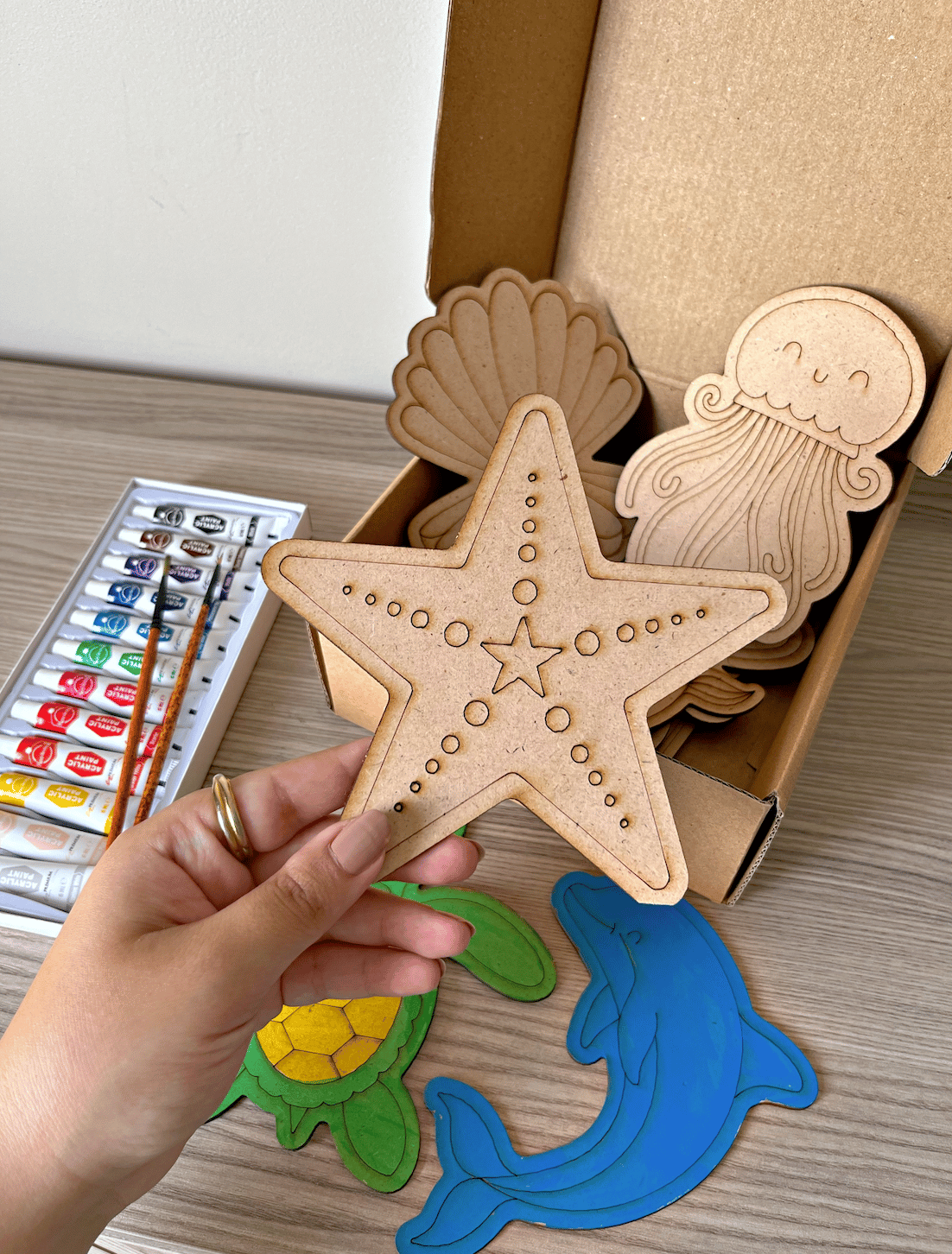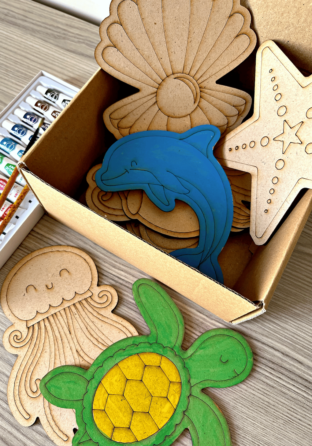 بوكس مجسمات خشب لتلوين عالم البحار 🐠🦑🐢