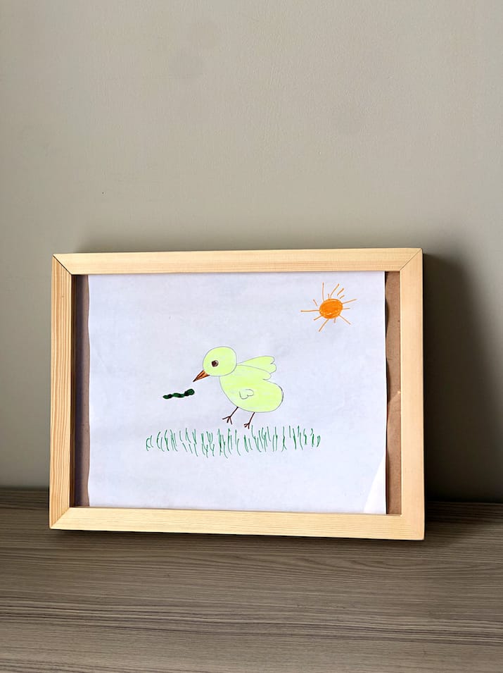 عجبني البرواز لحد دلوقتي. مش بس بحتفظ برسومات ولادي، كمان بيضيف لمسة حلوة للديكور.